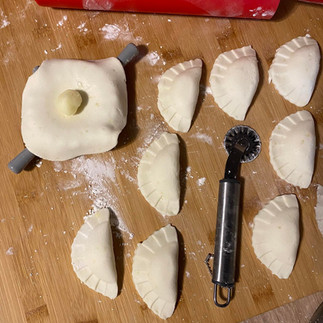 4. Roll out the dough evenly into a thin texture and form dumplings, either with the help of a dumpling maker or by hand.