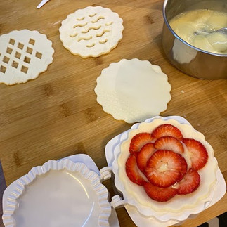 Cut the strawberries or any other fruit you´d like to use as a filling.