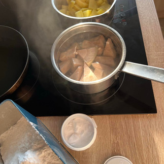 The total weight of the finished pies is approx. 225g (all together with the filling of the pies, I calculate 141.5mg phe - of which 28mg phe is made up of the jack fruit filling).